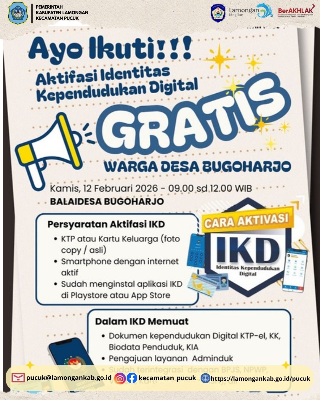 Pengumuman Kegiatan Pendaftaran Identitas Kependudukan Digital (IKD) 12 Februari 2026 Di Desa Bugoharjo Kec. Pucuk Kab. Lamongan