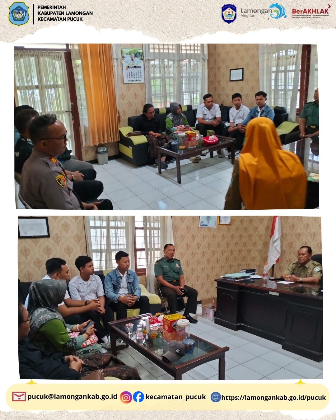 Pucuk, 12 Januari 2026 — Pemerintah Kecamatan Pucuk menyelenggarakan Rapat Evaluasi Pendidikan Profesi Guru (PPG) se-Kecamatan Pucuk Kabupaten Lamongan Tahun 2026 sebagai upaya peningkatan mutu dan profesionalisme tenaga pendidik di wilayah Kecamatan Pucuk. Kegiatan ini diikuti oleh para guru peserta PPG, perwakilan satuan pendidikan, pengawas sekolah, serta pemangku kepentingan di bidang pendidikan.