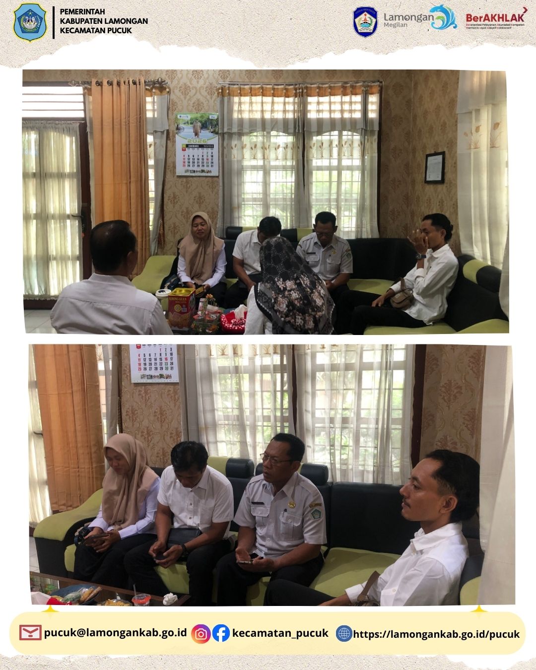 Camat Pucuk bersama para Kepala Desa se-Kecamatan Pucuk melaksanakan Rapat Koordinasi terkait kelengkapan dokumen pertanggungjawaban Tahun Anggaran 2026. Kegiatan ini bertujuan untuk menyamakan persepsi, meningkatkan tertib administrasi, serta memastikan pengelolaan keuangan desa berjalan sesuai dengan ketentuan yang berlaku. Melalui koordinasi yang baik, diharapkan tercipta tata kelola pemerintahan desa yang transparan, akuntabel, dan berkelanjutan.