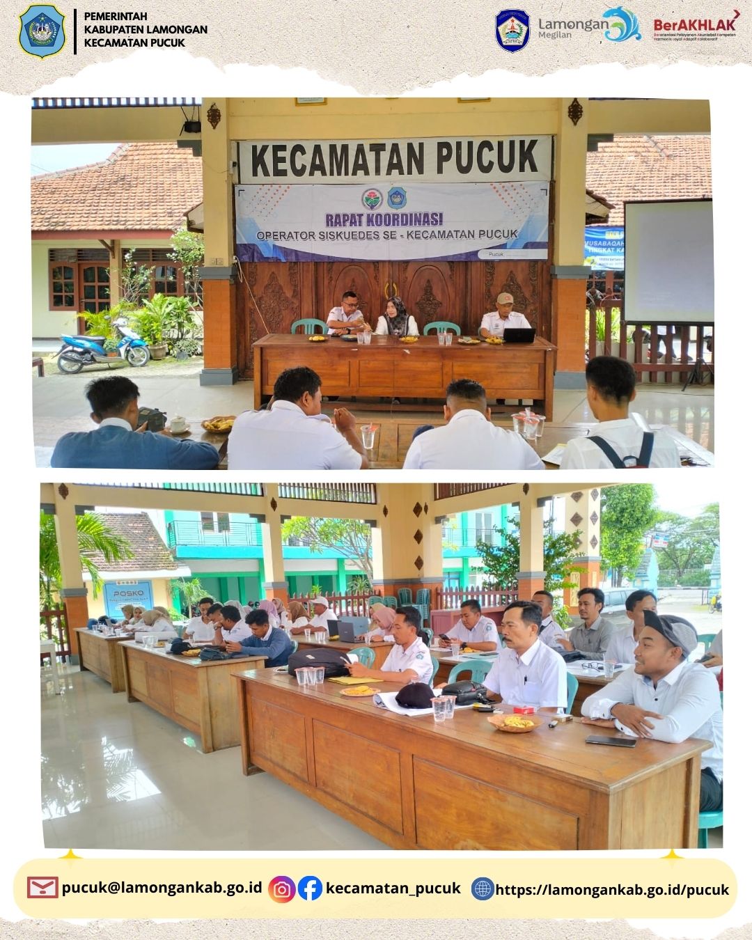 Pucuk, 4 Februari 2026 — Pemerintah Kecamatan Pucuk melaksanakan Rapat Koordinasi Operator Siskeudes yang dipimpin langsung oleh Bapak Camat Pucuk bersama Kasi PPM, bertempat di Pendopo Kecamatan Pucuk.