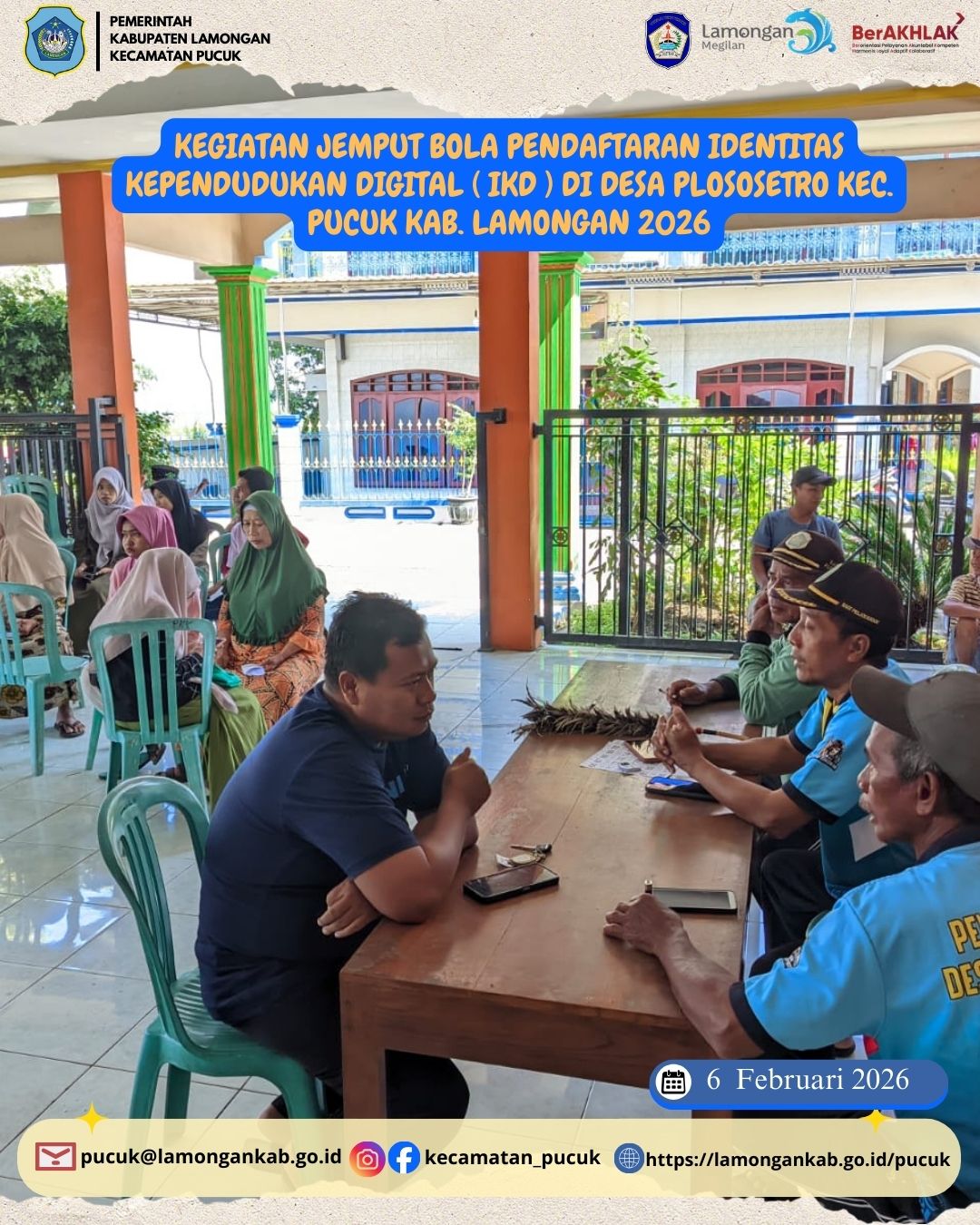 Pemerintah Kecamatan Pucuk melalui kerja sama dengan Dinas Kependudukan dan Pencatatan Sipil melaksanakan Program Jemput Bola Pendaftaran Identitas Kependudukan Digital (IKD) yang bertempat di Desa Plososetro, Kecamatan Pucuk.