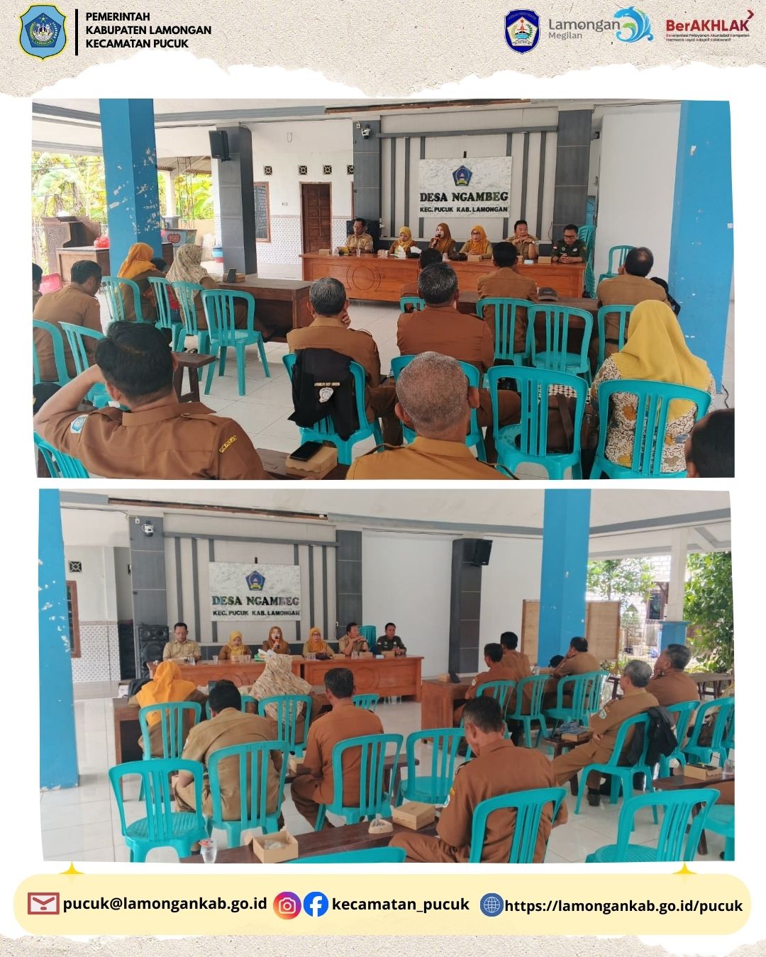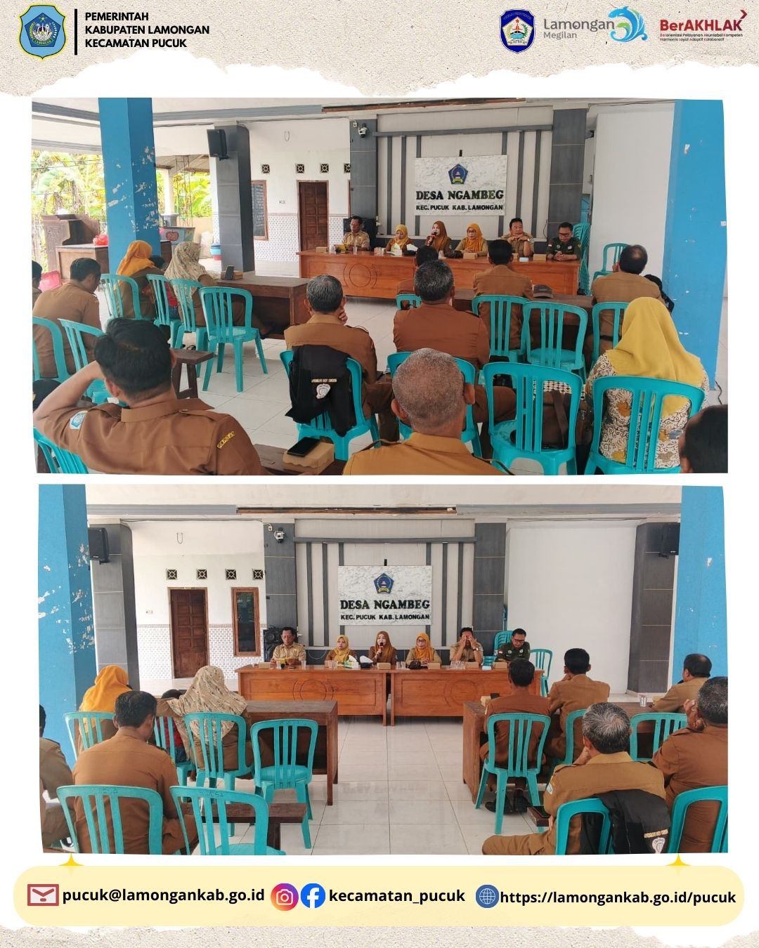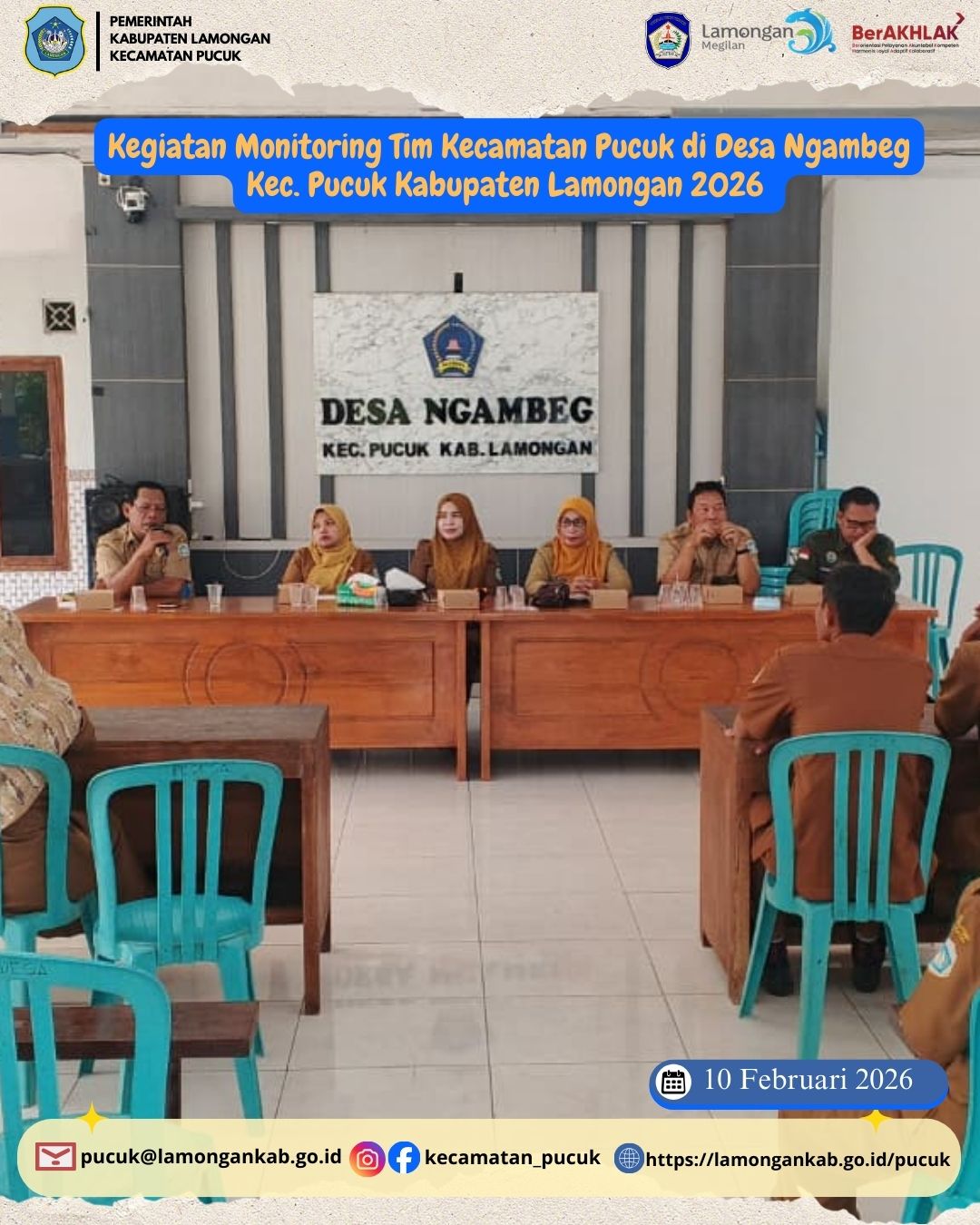 Dalam rangka meningkatkan kualitas penyelenggaraan pemerintahan desa serta memastikan program pembangunan berjalan sesuai perencanaan, Tim Monitoring Kecamatan Pucuk melaksanakan kegiatan monitoring dan pembinaan di Desa Ngambeg, Kecamatan Pucuk, Kabupaten Lamongan pada Selasa, 10 Februari 2026.