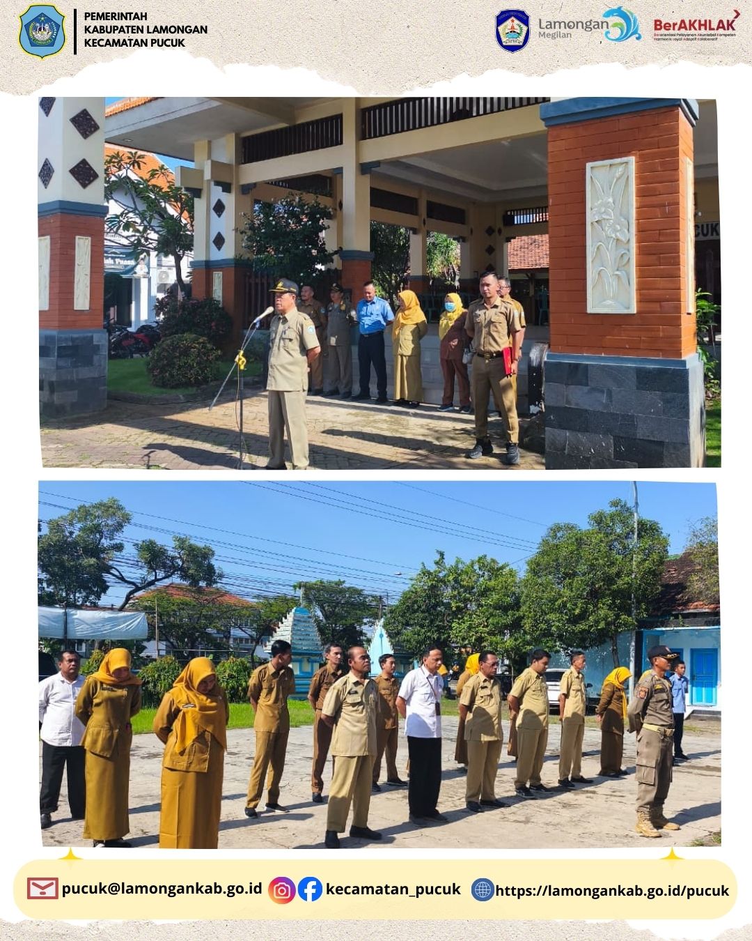 Apel Senin pagi merupakan salah satu kegiatan rutin yang dilaksanakan oleh seluruh pegawai di lingkungan Kantor Kecamatan Pucuk sebagai bentuk komitmen dalam meningkatkan disiplin, tanggung jawab, serta kualitas pelayanan kepada masyarakat.