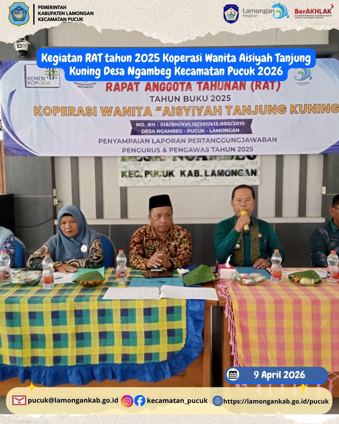 Pada hari Kamis, 9 April 2026, telah dilaksanakan kegiatan Rapat Anggota Tahunan (RAT) Tahun Buku 2025 Koperasi Wanita Aisyiyah Tanjung Kuning yang bertempat di Desa Ngambeg, Kecamatan Pucuk. Kegiatan ini merupakan agenda rutin tahunan yang memiliki peran penting dalam menjaga transparansi, akuntabilitas, serta keberlanjutan pengelolaan koperasi.