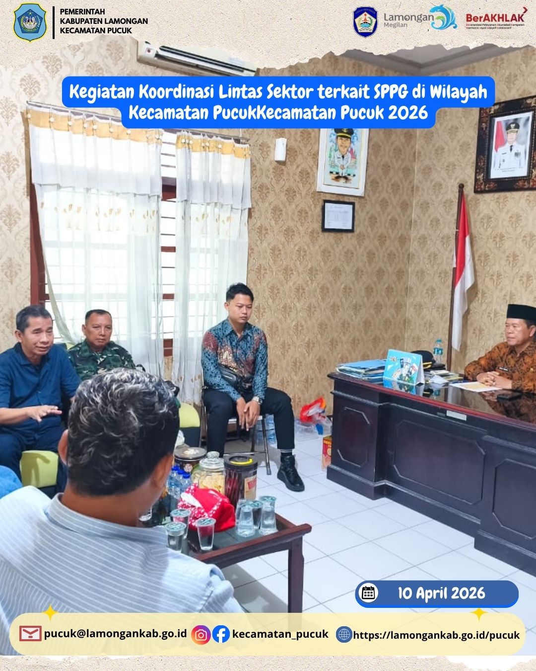 Pada tanggal 10 April 2026, Pemerintah Kecamatan Pucuk menyelenggarakan kegiatan Koordinasi Lintas Sektor terkait SPPG di wilayah Kecamatan Pucuk sebagai langkah strategis dalam meningkatkan sinergi antar pemangku kepentingan.