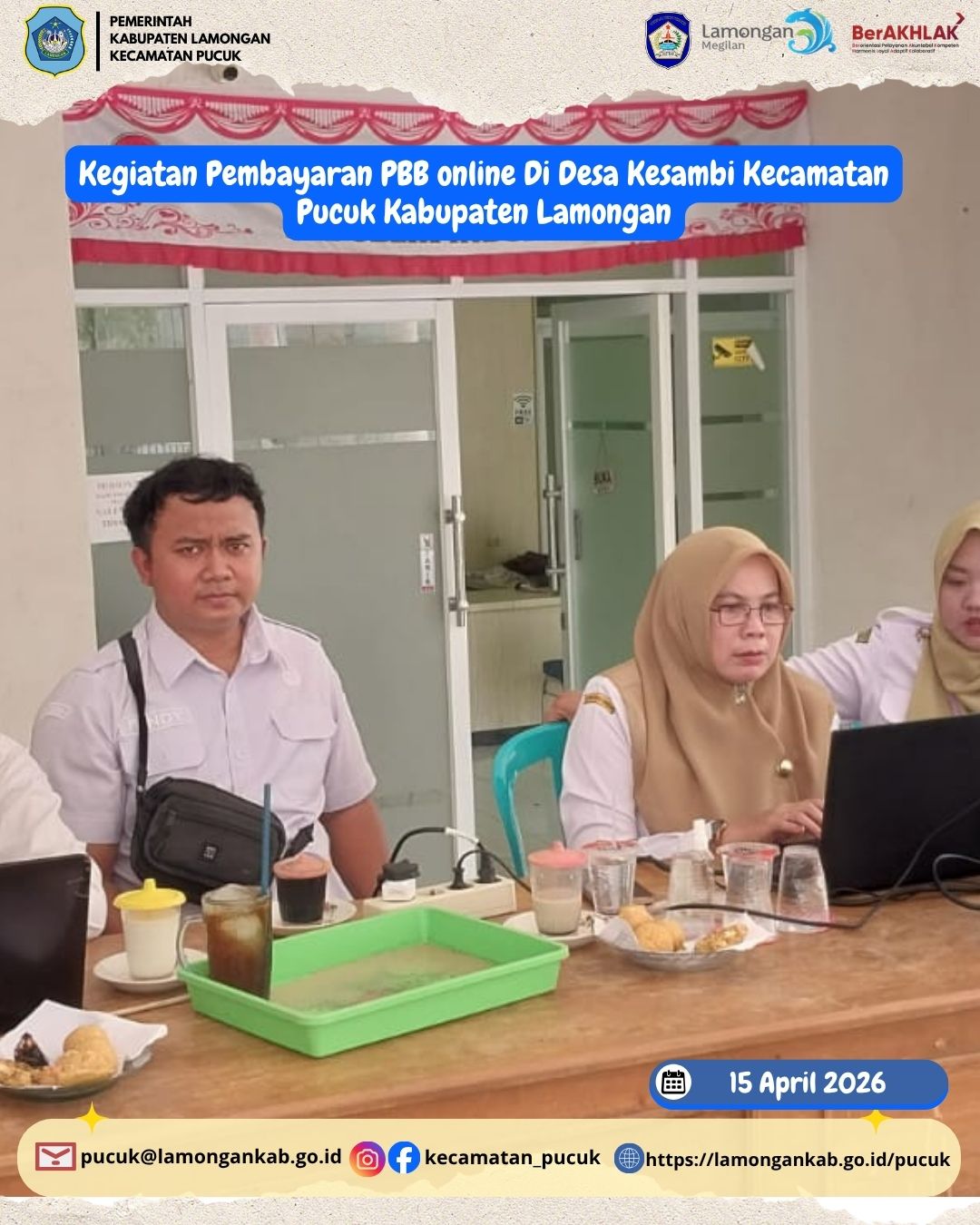 Pada hari Rabu, 15 April 2026, telah dilaksanakan kegiatan pelayanan pembayaran Pajak Bumi dan Bangunan (PBB) secara online di Desa Kesambi, Kecamatan Pucuk, Kabupaten Lamongan. Kegiatan ini merupakan bagian dari upaya pemerintah dalam meningkatkan kualitas pelayanan publik melalui pemanfaatan teknologi digital, sehingga masyarakat dapat lebih mudah, cepat, dan efisien dalam memenuhi kewajiban perpajakan.