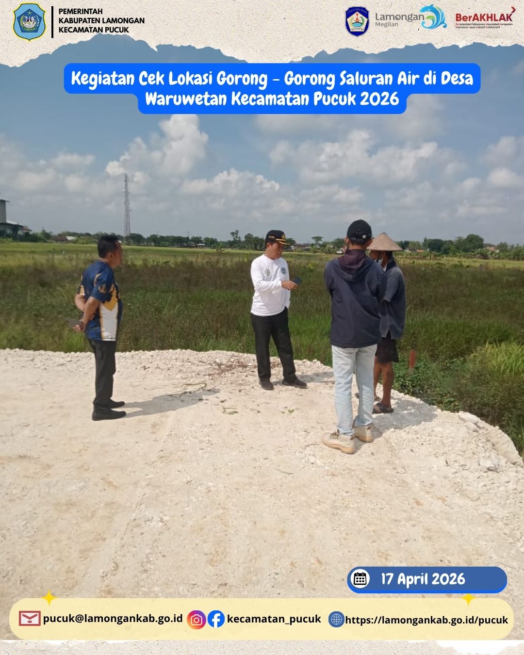 Dalam upaya meningkatkan kualitas infrastruktur serta memastikan kelancaran sistem drainase di wilayah, Pemerintah Kecamatan Pucuk melaksanakan kegiatan pengecekan lokasi gorong-gorong saluran air di Desa Waruwetan pada tanggal 17 April 2026.