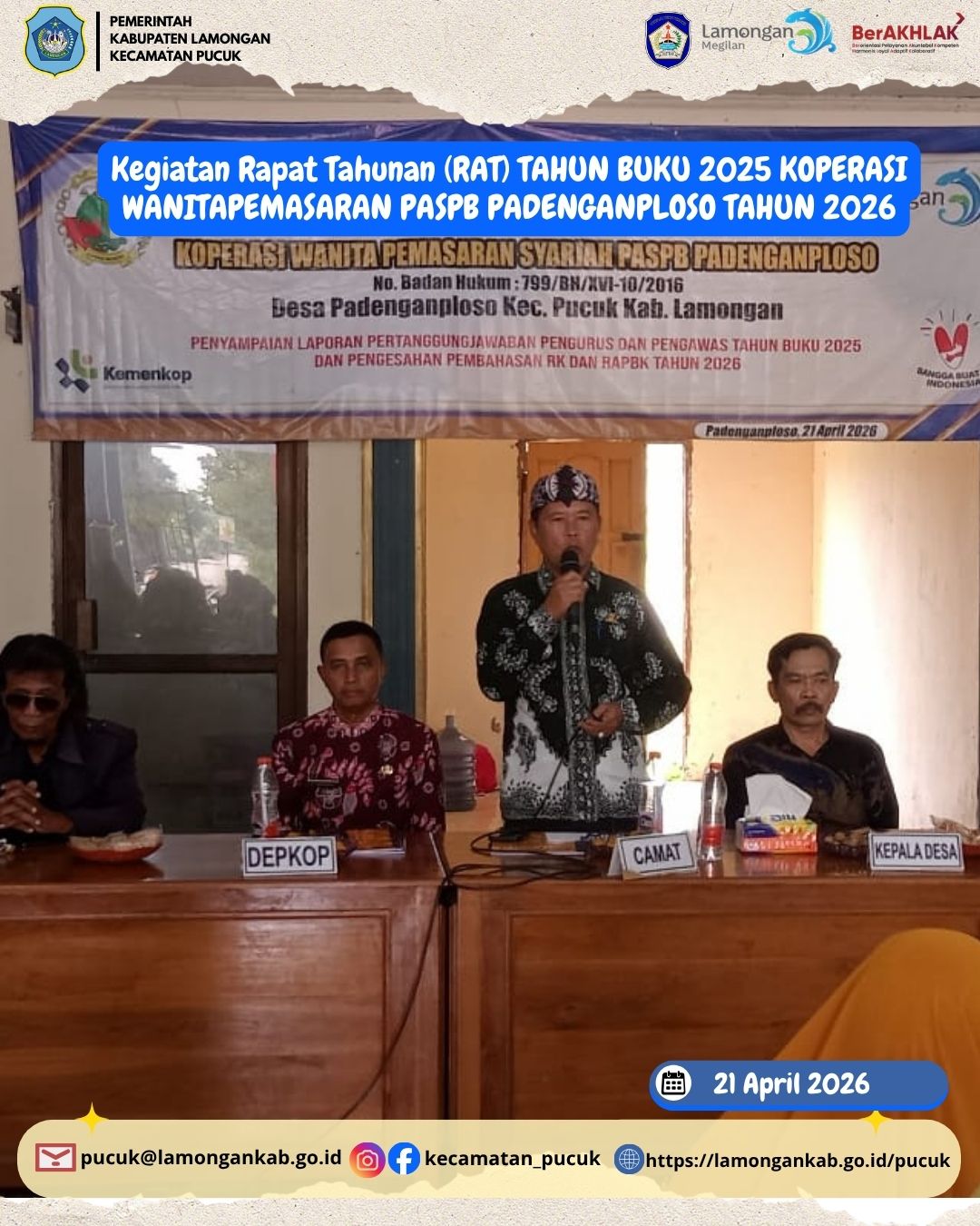 Pada tanggal 21 April 2026, Koperasi Wanita Pemasaran PASPB Padenganploso, yang berlokasi di Kecamatan Pucuk, menggelar kegiatan Rapat Anggota Tahunan (RAT) untuk Tahun Buku 2025. Kegiatan ini menjadi momentum penting bagi seluruh anggota koperasi dalam mengevaluasi kinerja organisasi, membahas program-program yang telah dilaksanakan, serta merencanakan langkah-langkah strategis untuk menghadapi tantangan di masa depan.