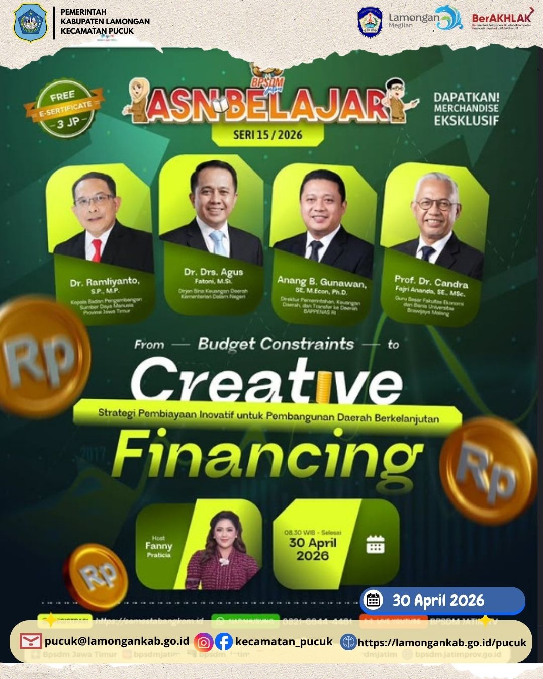 Pemerintah Kecamatan Pucuk turut berpartisipasi dalam kegiatan Webinar “Strategi Pembiayaan Inovatif untuk Pembangunan Daerah Berkelanjutan 2026” sebagai bagian dari upaya meningkatkan kapasitas aparatur dan memperkuat perencanaan pembangunan yang adaptif dan berkelanjutan.